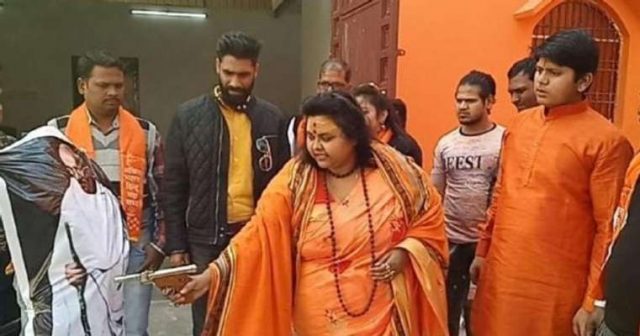 അലിഗഢ്: മഹാത്മാഗാന്ധി രക്തസാക്ഷിത്വദിനത്തില്‍ ഹിന്ദു മഹാസഭ ദേശീയ സെക്രട്ടറി പൂജ ശകുന്‍ പാണ്ഡെ ഗാന്ധികോലത്തിനു നേരെ പ്രതീകാത്മകമായി വെടിയുതിര്‍ത്തു. അലിഗഡില്‍ സംഘടിപ്പിച്ച ചടങ്ങിലായിരുന്നു ഗാന്ധിയുടെ കോലത്തിന് നേരെ വെടിയുതിര്‍ത്തത്. ശേഷം ഹിന്ദു മഹാസഭ നേതാവ് ഗോഡ്സെയുടെ പ്രതിമയില്‍ ഹാരാര്‍പ്പണം നടത്തി. രാജ്യമൊട്ടാകെ ഗാന്ധിജിയുടെ രക്തസാക്ഷിത്വ ദിനം ആചരിക്കുന്നതിനിടെയാണ് ഹിന്ദുമഹാസഭ പ്രകോപനപരമായ പരിപാടി സംഘടിപ്പിച്ചത്.