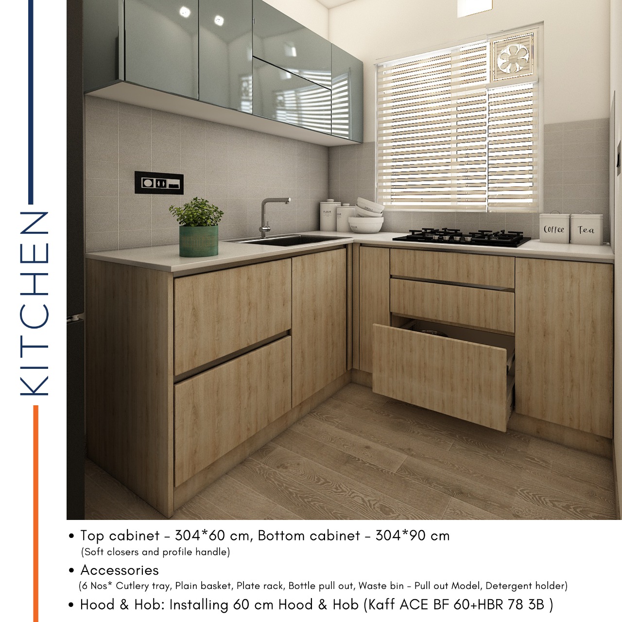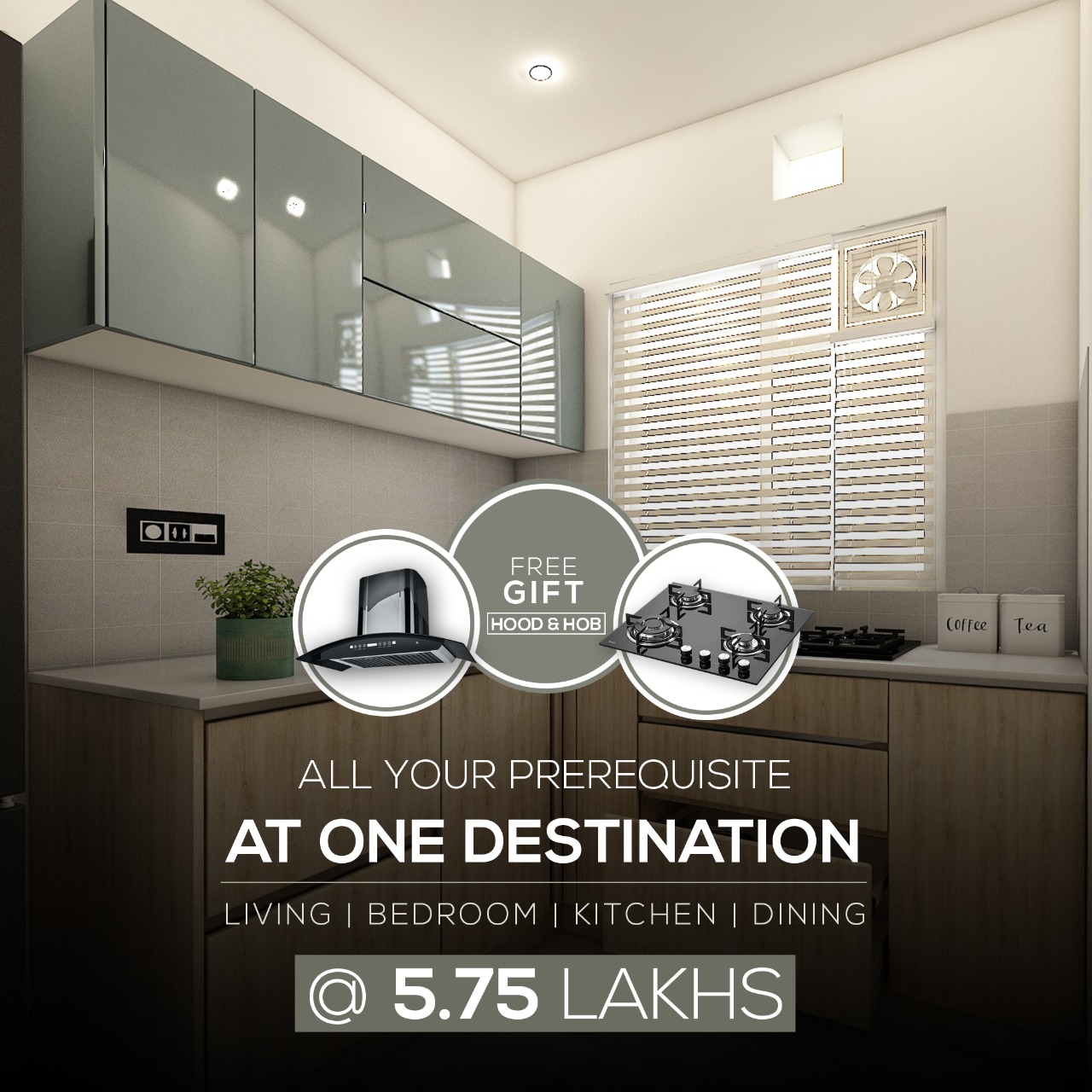 മോഡുലാർ കിച്ചൻ വിത്ത് ആക്സസറീസ്, വാർഡ്രോബ്, കോട്ട് & സൈഡ് ടേബിൾ, ടിവി യൂണിറ്റ്, ഡൈനിംഗ് ടേബിൾ & ചെയർ, ഷൂ റാക്ക് തുടങ്ങിയവയെല്ലാം ഈ പാക്കേജില് ഉള്പ്പെടുന്നതാണ്. ഉന്നത നിലവാരമുള്ള മറൈൻ പ്ലൈവുഡും, മറ്റ് നിര്മ്മാണവസ്തുക്കളും ഉപയോഗിച്ച് പൂര്ണമായും ഫാക്റ്ററിയിൽ നിർമ്മിച്ച് ചുരുങ്ങിയ ദിവസത്തിനുള്ളിൽ സൈറ്റുകളിൽ അസംബിൾ ചെയ്ത് വർക്ക് പൂർത്തീകരിക്കുന്നു.