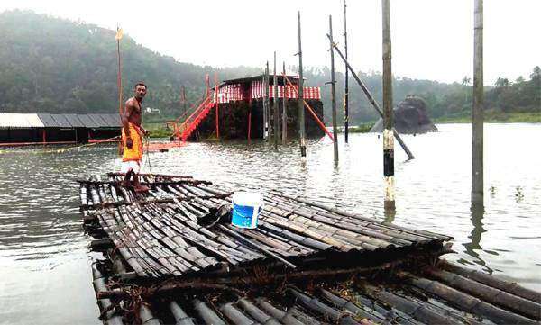 ക്ഷേത്രത്തില് ഇപ്പോള് ആറടിയോളം വെള്ളം കയറിയിരിക്കുകയാണ്. നാഗരാജ പ്രതിഷ്ഠകളും, ക്ഷേത്രത്തിന്റെ മൂന്ന് പടികളും വെള്ളത്തില് മുങ്ങി. ക്ഷേത്രം ഓഫീസിന്റെ മുക്കാല് ഭാഗത്തോളം വെള്ളത്തിലാണ്. ഇതുവരെ ഈറ്റ ചങ്ങാടത്തിലാണ് പൂജാരിയും ഭക്തരും മറ്റും എത്തിയിരുന്നത്. എന്നാല് വെള്ളം ഇനിയും ഉയരുന്ന സാഹചര്യത്തില് എങ്ങനെ പൂജ നടത്തുമെന്ന കാര്യത്തിലും അനിശ്ചിതത്വമുണ്ട്.