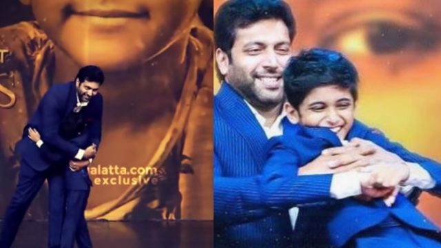ജയം രവിയാണ് മകന് പുരസ്കാരം നൽകിയത്. മകന് പുരസ്കാരം നൽകാൻ സാധിച്ചതിൽ തനിക്ക് അതിയായ സന്തോഷമുണ്ടെന്ന് ജയം രവി പറഞ്ഞു. തുടർന്ന് വേദിയിൽ ‘കുറുമ്പാ കുറുമ്പാ’ എന്ന ഗാനത്തിന് മകനൊപ്പം ജയം രവി ചുവടുവച്ചു. അച്ഛന്റെയും മകന്റെയും കിടിലൻ ഡാൻസ് വീഡിയോ ഇതിനോടകം സോഷ്യൽ മീഡിയയിൽ വൈറലായി. പതിനൊന്നു ലക്ഷത്തോളം ആളുകളാണ് ഡാൻസ് കണ്ടത്.
