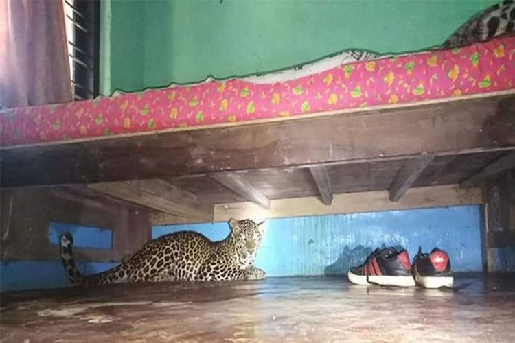 ബന്ധുവിന്റെ കല്യാണത്തിന് പോയ രാഹിനും കുടുംബവും രണ്ട് ദിവസം കഴിഞ്ഞ് വീട്ടിലേക്ക് തിരിച്ചെത്തിയപ്പോഴാണ് കിടക്കയില് കിടന്നുറങ്ങുന്ന പുലിയെ കണ്ടത്. ആളുകളുടെ ബഹളം കേട്ടതോടെ പുലി കട്ടിലിനടിയിലേക്ക് പതുങ്ങി. തുടര്ന്ന് വീട്ടുകാര് മുന്വാതില് പുറത്തുനിന്നു കുറ്റിയിടുകയും പൊലീസിനേയും വനപാലകരേയും വിവരമറിയിക്കുകയും ചെയ്തു. ചൊവ്വാഴ്ച രാവിലെ 11 മണിയോടെയാണ് സംഭവം.