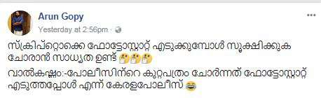 കൊച്ചി: നടിയെ അക്രമിച്ച കേസില് ദിലീപിനെതിരായ കുറ്റപത്രം കോടതി ഫയലില് സ്വീകരിച്ചതിന് പിന്നാലെ പരിഹാസവുമായി രാമലീലയുടെ സംവിധായകന് അരുണ് ഗോപി. സ്ക്രിപ്റ്റൊക്കെ ഫോട്ടോസ്റ്റാറ്റ് എടുക്കുമ്പോള് സൂക്ഷിക്കുക, ചോരാന് സാധ്യത ഉണ്ടെന്നാണ് അരുണ് ഗോപിയുടെ ഫേസ്ബുക് പോസ്റ്റ്.